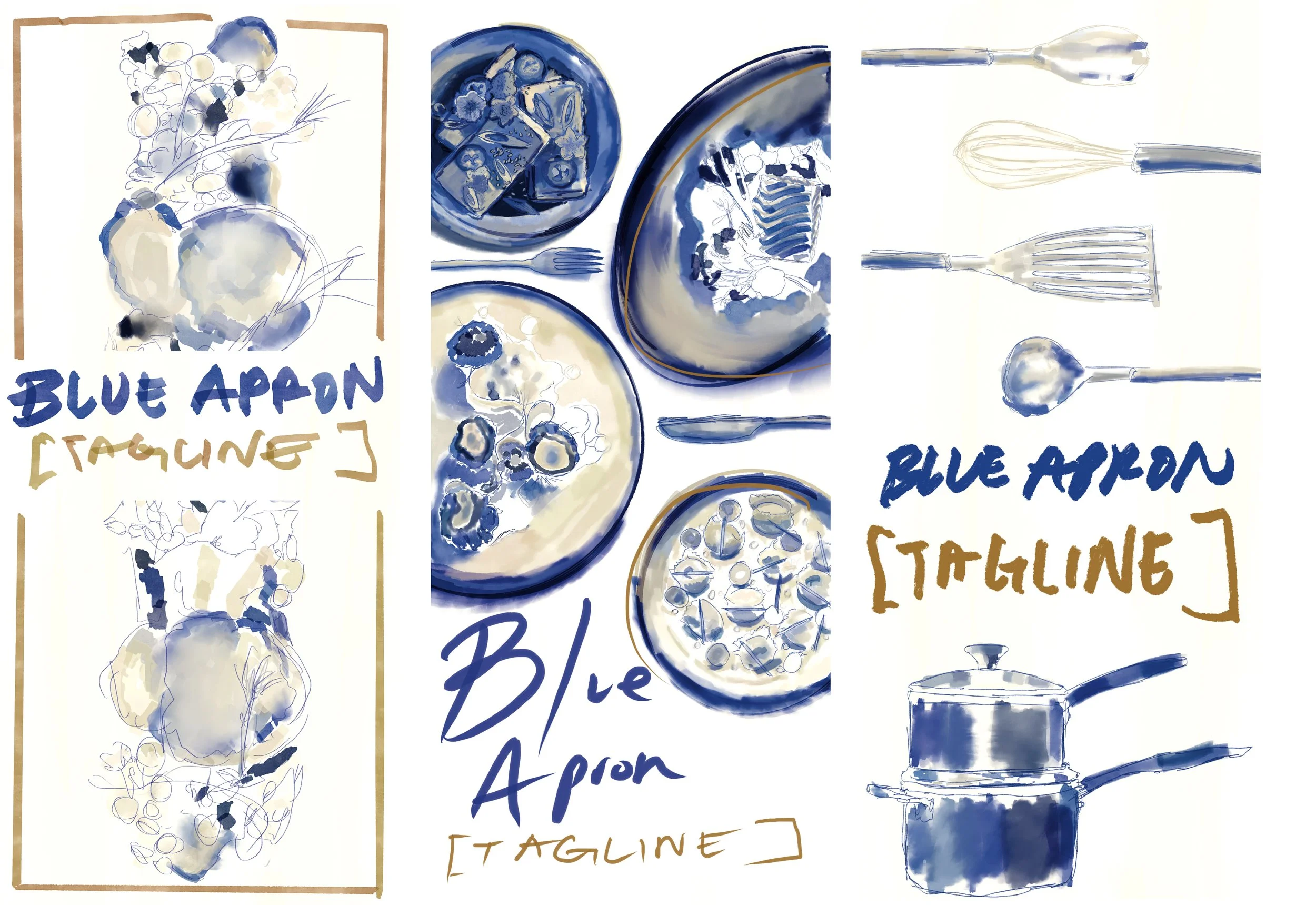 Top (Left to Right): Blue Apron Banner sketches, storyboard for Instagram ad